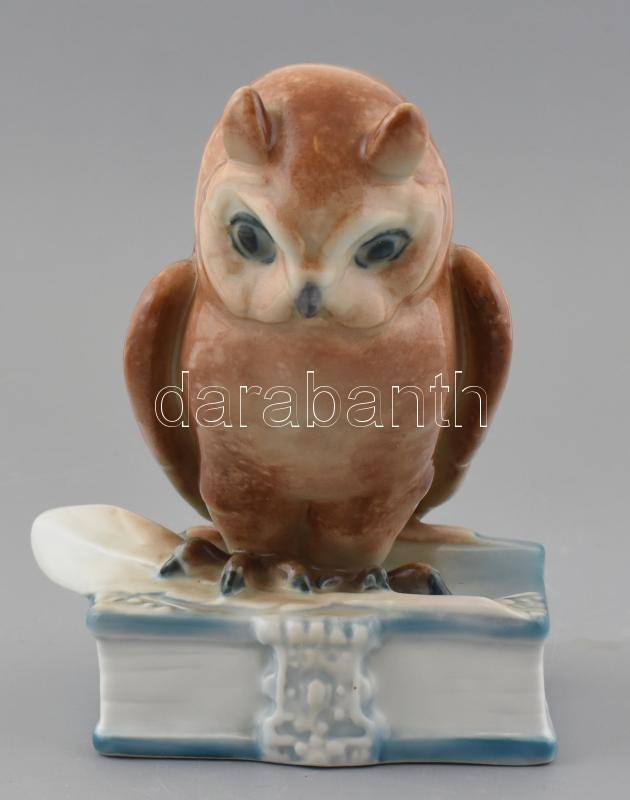 Zsolnay porcelán bagoly, kézzel festett, jelzett, hibátlan, m: 16 cm