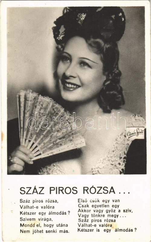 Honthy Hanna "Száz piros rózsa" De Fries Károly zenéje, Kovách Kálmán verse. Csiszár és Sárdi felvétele (fl)