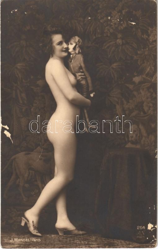 Erotic nude lady with doll. AN. Paris 254. J. Mandel (non PC) (gyűrődé...