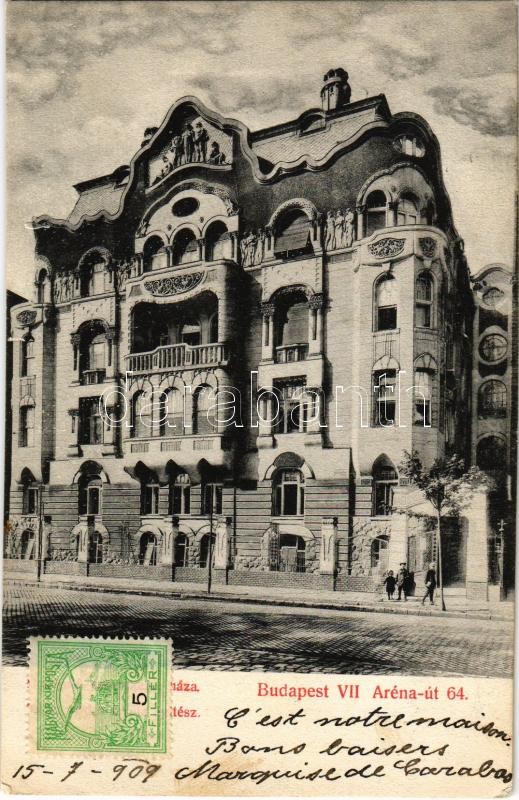 1909 Budapest VII. Házépítő-szövetkezet háza (Országos Tisztviselő Szövetség Lakásszövetkezete). Aréna út 64. (ma Dózsa György út). TCV card