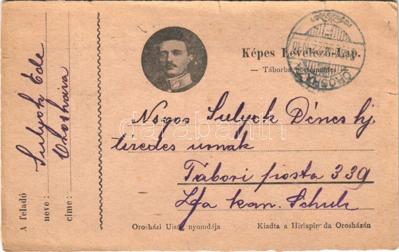 Description: 1918 Első világháborús tábori postai levelezőlap IV. Károly király arcképével. Orosházi Újság nyomdája kiadása / WWI Austro-Hungarian K.u.K. military field postcard, Charles I of Austria. Feldpostkarte (szakadások / tears)