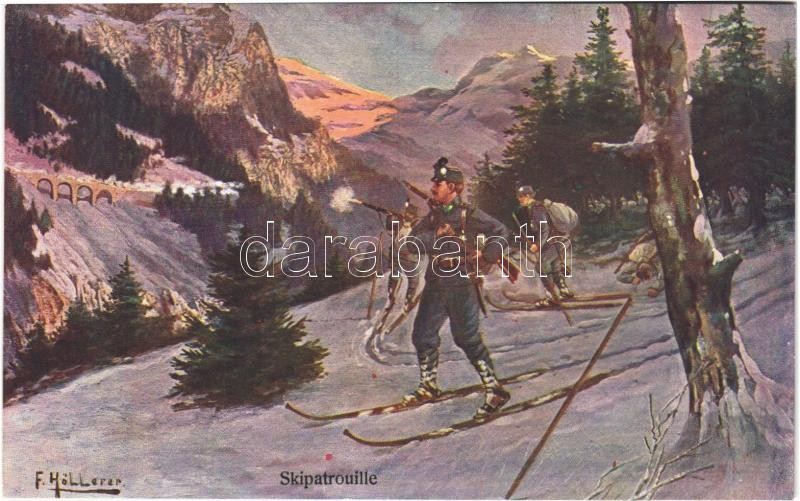 Skipatrouille / WWI Austro-Hungarian K.u.K. military art postcard, mountain troops, ski patrol s: F. Höllerer