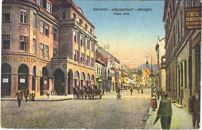 https://www.darabanth.com/en/392-Online-auction/392.0/Postcards/Transylvania~1500006/1918-Brasso-Kronstadt-Brasov-Kapu-utca-Korona-kavehaz-es-szalloda-uzletek-Vasuti-level~II2374859