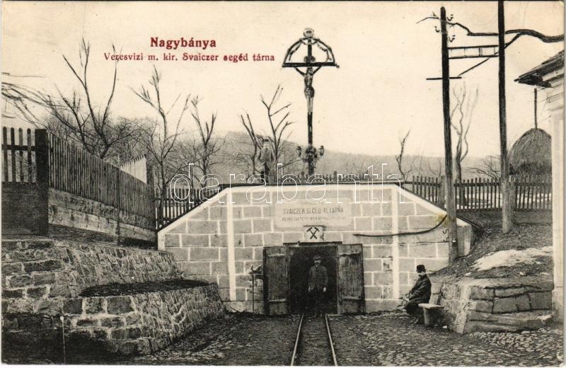 Nagybánya, Baia Mare; Veresvizi M. kir. Svaiczer segéd altárna, aranybánya bejárata. Krizsanowszky Lőrinc kiadása / gold mine entrance