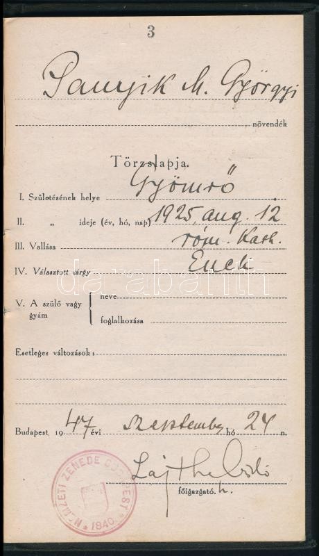 1947 Lajtha (Leitersdorfer) László (1892-1963) zeneszerző, népzenekutató aláírása leckekönyvben