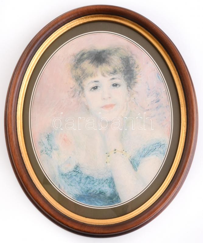 Ovális üvegezett fa képkeret Renoir nyomattal, nyomat gyűrött, belső m...