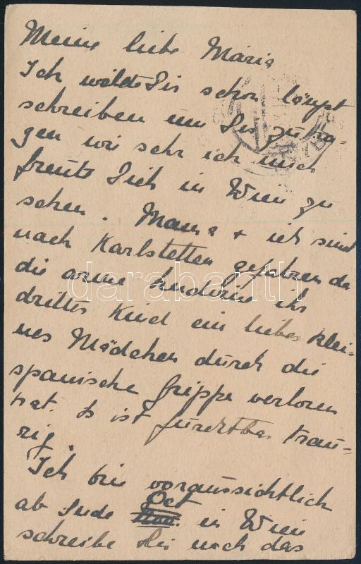1918 Zichy Máriának címzett német nyelvű levelezőlap