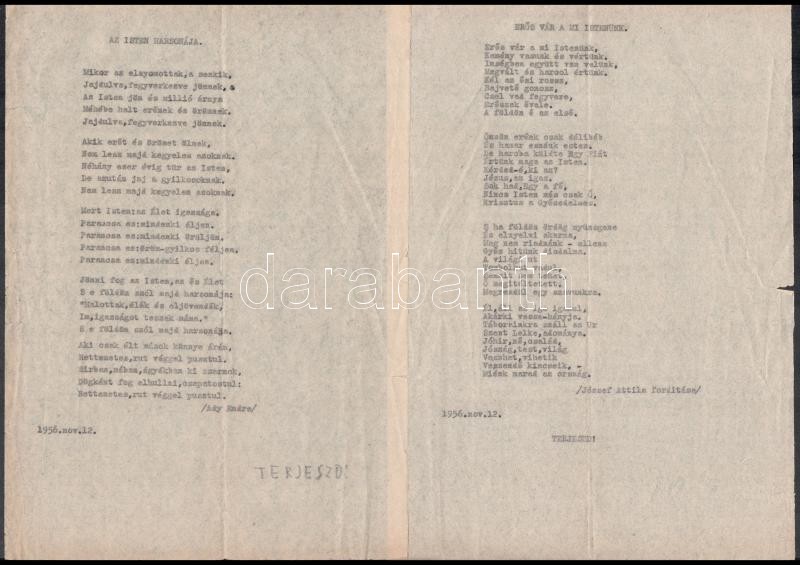1956 Versek, felhívások stb. a forradalom idejéből (Erős vár a mi iste... https://www.darabanth.com/en/393-Online-auction/393.0/Art-and-other-collectibles/Historical-documents-manuscripts~500019/1956-Versek-felhivasok-stb-a-forradalom-idejebol-Eros-var-a-mi-istenunk-Kotelet-Kotele~II2382722