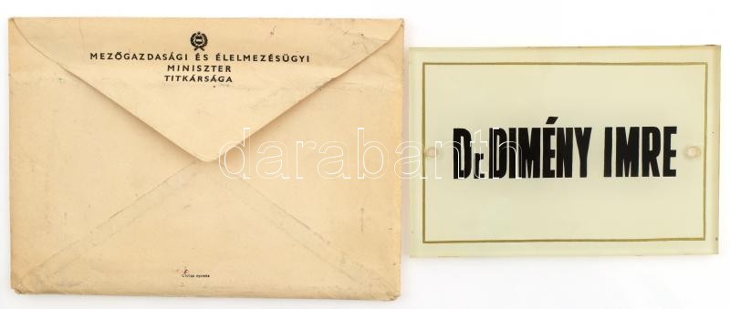 Dimény Imre (1922-2017) földművelésügyi és élelmezésügyi miniszter névtáblája, 8,5×12,5 cm