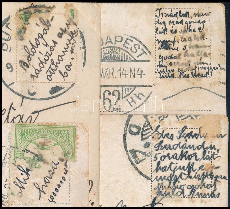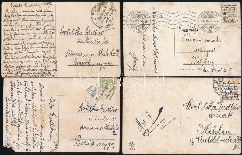 cca 1914-1915 4 db megírt, futott képeslap eltávolított bélyeggel, bél...