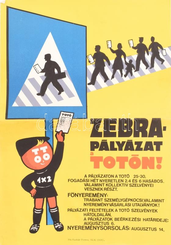 https://www.darabanth.com/en/393-Online-auction/393.0/Art-and-other-collectibles/Posters~500032/Zebrapalyazat-a-TOTO-n-reklamplakat-hajtott-sarkan-gyurodessel-szakadassal-46C39732-cm~II2381756
