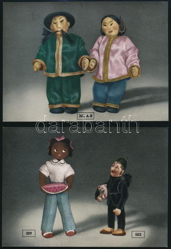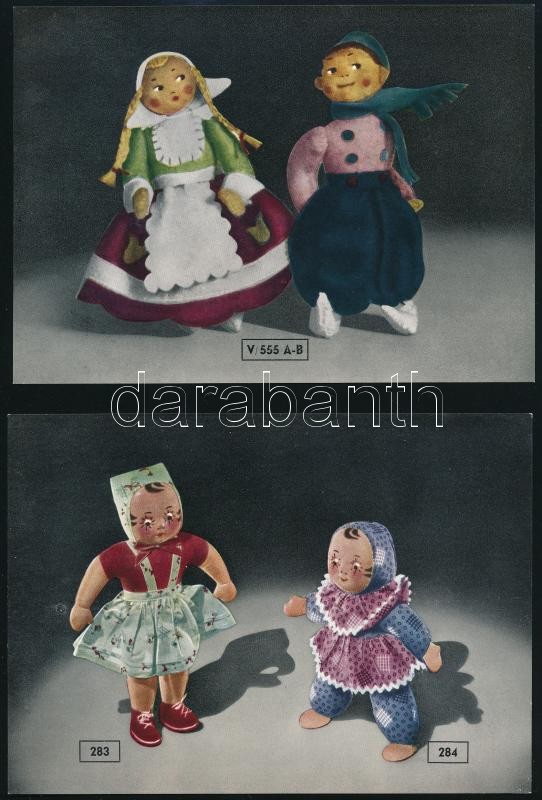 cca 1965 Az Artex külkereskedelmi vállalattól rendelhető különböző öltöztetett minőségi baba képes ismertető füzete, 25 színes lapon, tokban