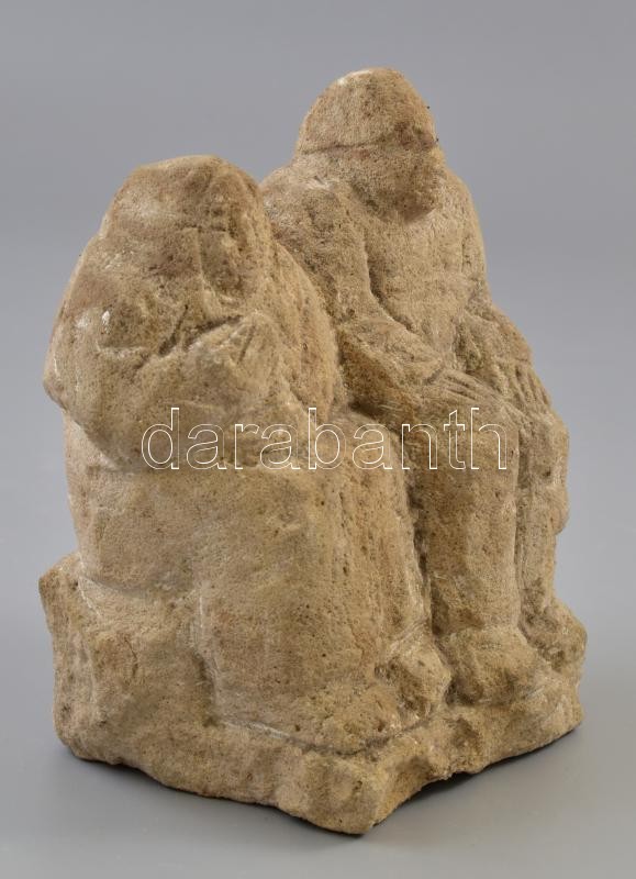 Nagy Sándor (1923-2017): Öregek. Mészkő, jelzés nélkül. 21x13,5x11 cm. Körmendi Galéria atesztjével