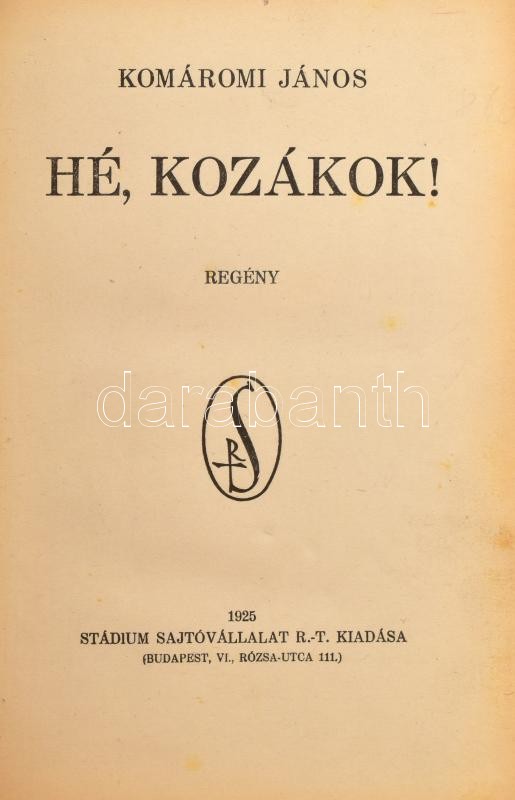 https://www.darabanth.com/en/393-Online-auction/393.0/Books/Books-Other-rarities~1000027/Komaromi-Janos-He-kozakok-Bp-1925-Stadium-Felvaszon-kotesben-Magyar-Jovo-konyvk~II2379707