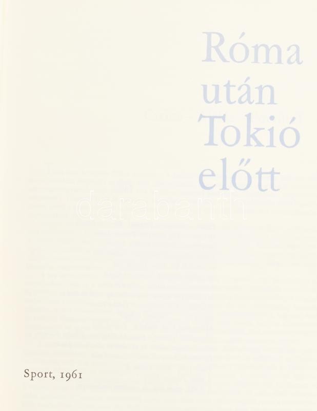 Description: Róma után Tokió előtt. Szerk.: Pászotr Lajos. Bp., 1961, Sport. Fekete-fehér fotókkal gazdagon illusztrált. Kiadói egészvászon-kötés, kiadói szakadozott papír védőborítóban.