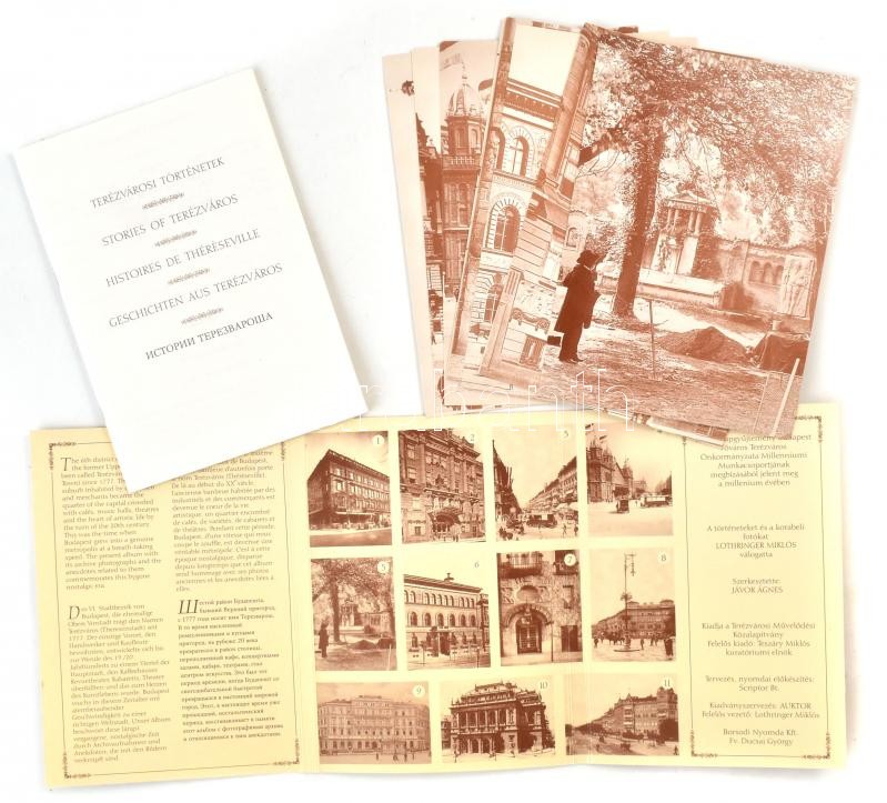 Terézvárosi történetek. A történeteket és a korabeli fotókat Lothringer Miklós válogatta. Szerk.: Jávor Ágnes. Bp., 2000, Terézvárosi Művelődési Közalapítvány, 63 p. + 10 db fekete-fehér fotólap. Magyar, angol, francia, német és orosz nyelven. Kiadói mappában, jó állapotban.