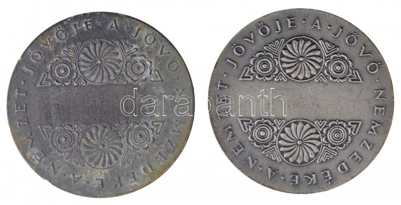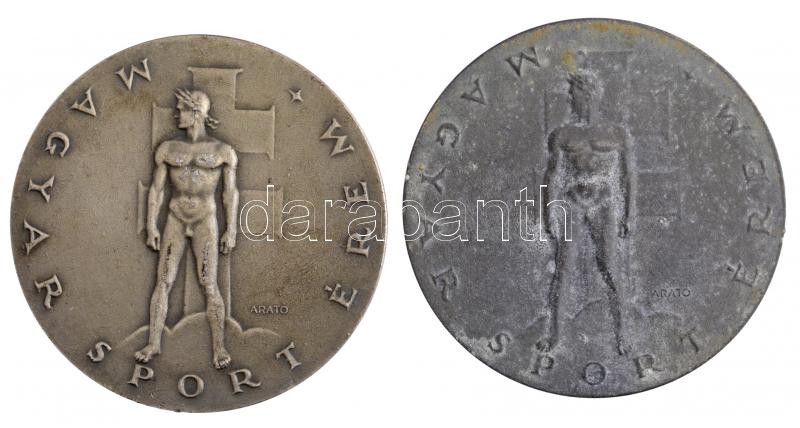 Arató Gyula (1889-1969) ~1940. "Magyar Sport Érem / A jövő nemzedéke a nemzet jövője" ezüstözött Br és Zn díjérem (2xklf) (61mm) T:2-