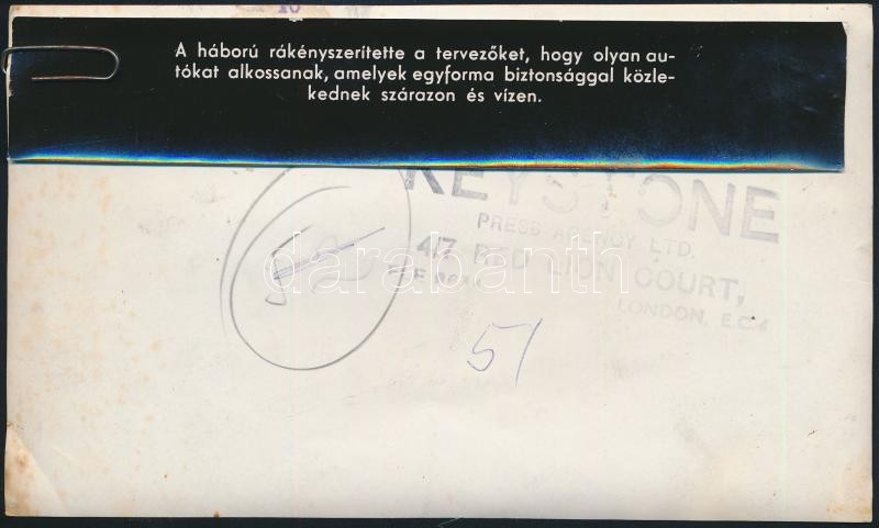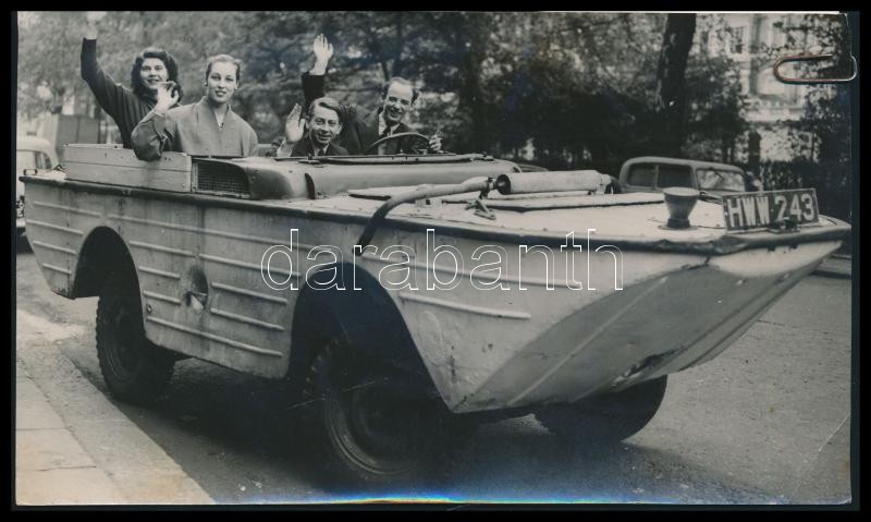Kétéltű autó, fotó külön felirattal, 10×18,5 cm