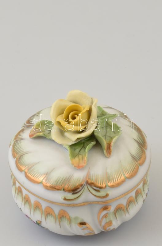 Herendi porcelán Viktória mintás bonbonier, kézzel festett, jelzett, hibátlan, m: 8 cm, d: 8 cm
