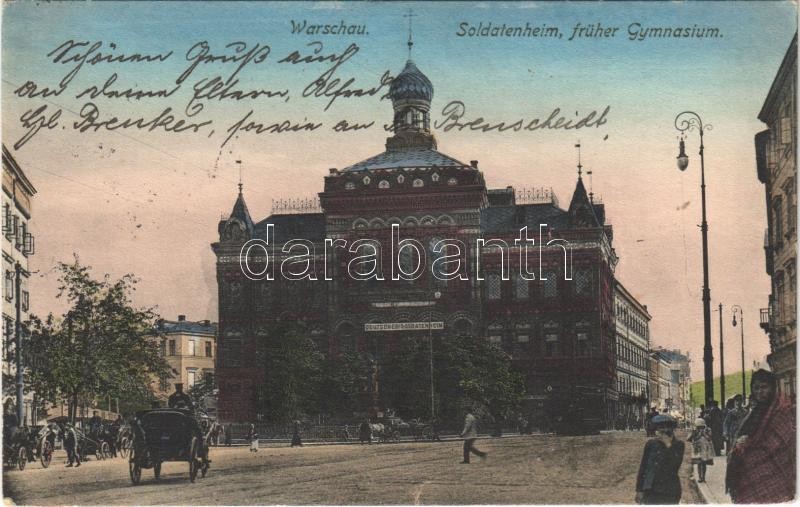 1916 Warszawa, Varsovie, Warschau, Warsaw; Deutsches Soldatenheim, frü... https://www.darabanth.com/en/393-Online-auction/393.0/Postcards/Poland~1500052/1916-Warszawa-Varsovie-Warschau-Warsaw-Deutsches-Soldatenheim-fruher-Gymnasium-street-view-~II2377804