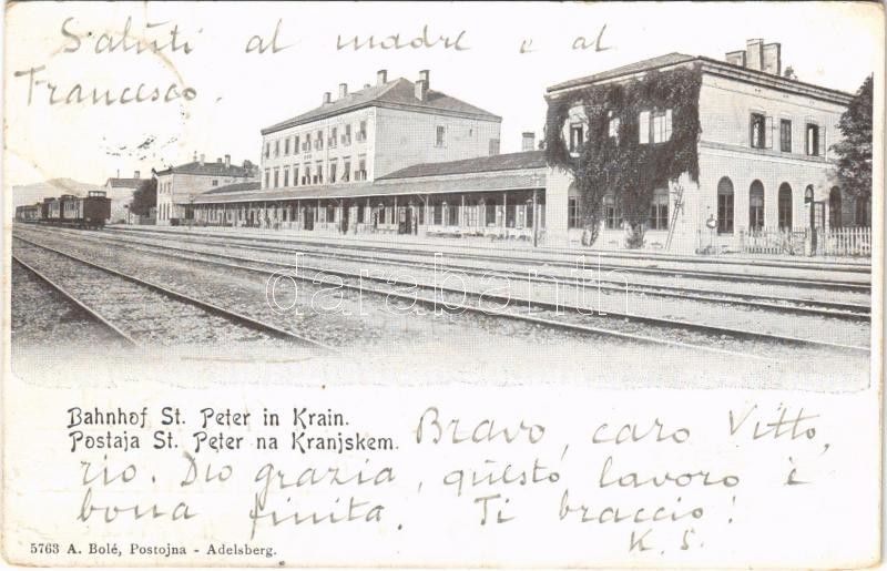 Pivka, St. Petra na Krasu, San Pietro del Carso, St. Peter in Krain; Bahnhof / Postaja / railway station. A. Bolé