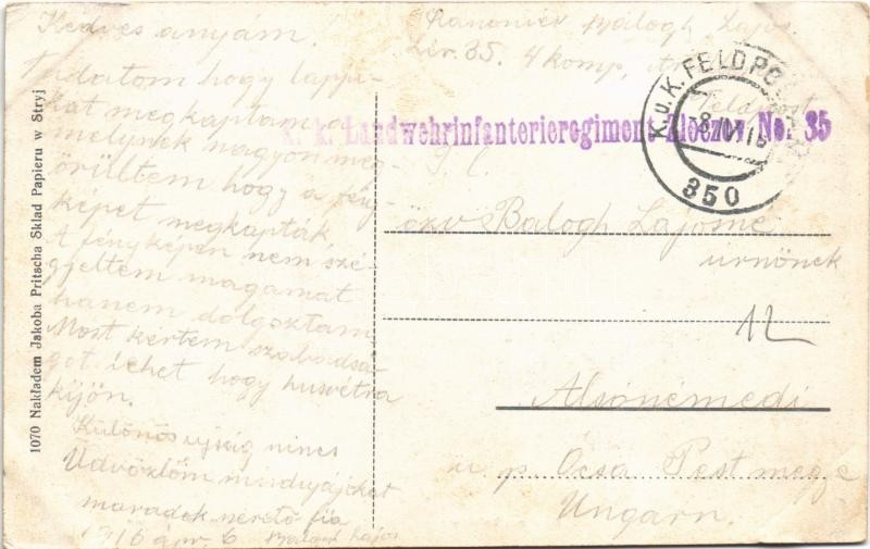 1916 Stryi, Stryj; Park "Olszyna", Rynek, Dworzec kolejowy, Gmach Sokola / park, square, market, shops of Dawid Eidmann, R. Findling, railway station, Sokol movement's building + "K.K. Landwehrinfanterieregiment Zloczov No. 35." (EK)