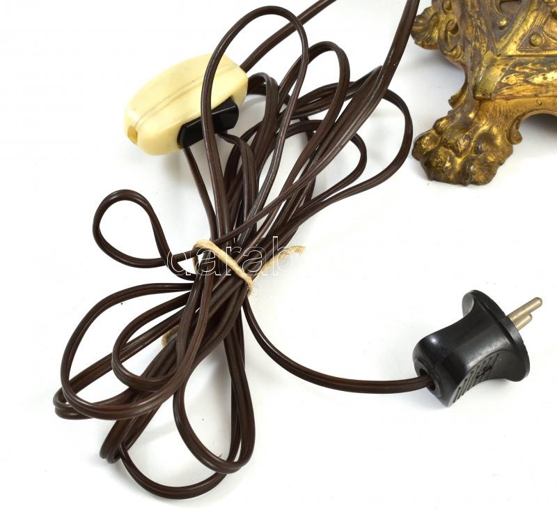 Asztali lámpa. Nagy méretű, XX. sz eleje. Réz, porcelán foglalattal. Bura nélkül. 85 cm