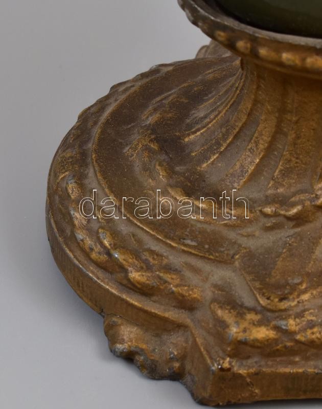 Lant formájú asztali óra. XIX. sz. Fajansz test, bukolikus jelenettel. Levonóképes. Réz óratok madár dísszel. Óra szerkezet nem működik. 43 cm