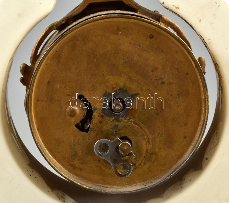 Lant formájú asztali óra. XIX. sz. Fajansz test, bukolikus jelenettel....