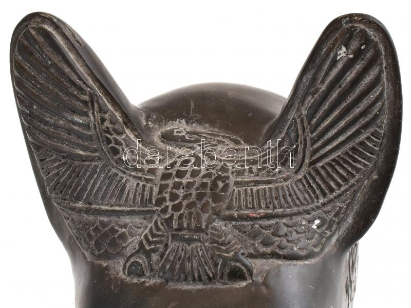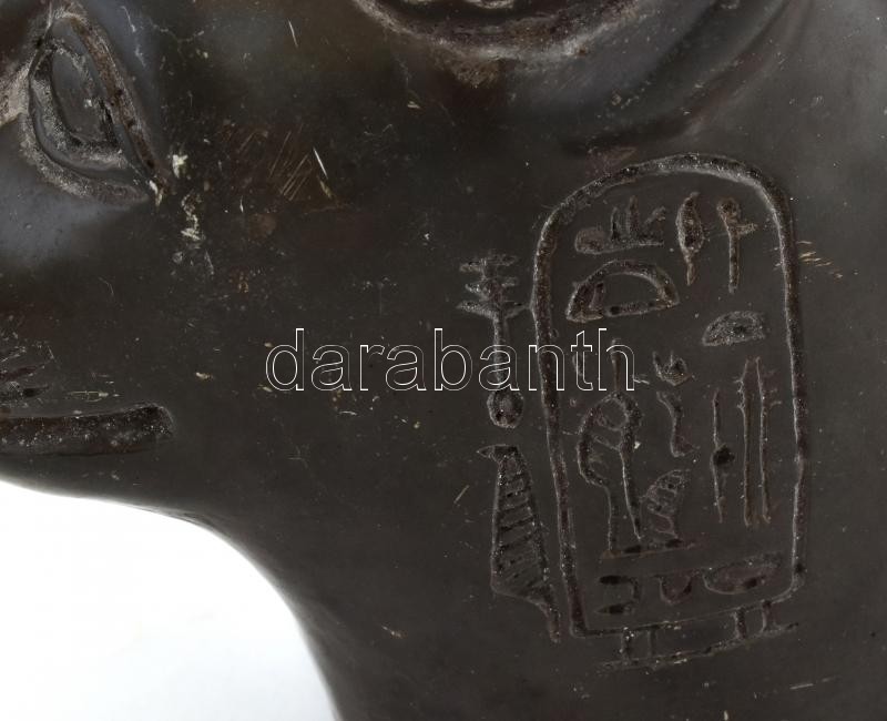 Egyiptomi macskaistenséget ábrázoló szoborfej, karcolásokkal, jelzés n...