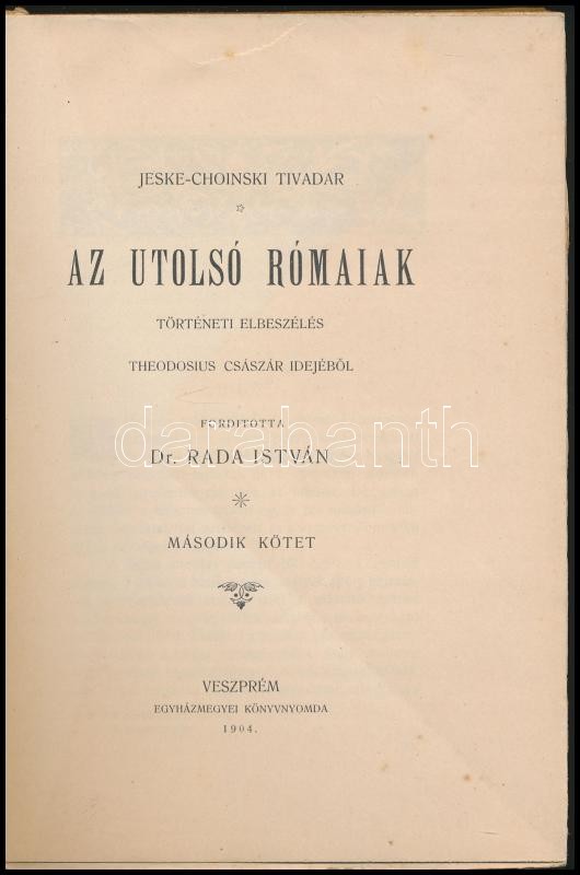 Jeske-Choinski Tivadar: Az utolsó rómaiak. II. köt. Történeti elbeszél... https://www.darabanth.com/en/394-Online-auction/394.0/Books/Books-Other-rarities~1000018/Jeske-Choinski-Tivadar-Az-utolso-romaiak-II-kot-Torteneti-elbeszeles-Theodosius-csaszar~II2387623