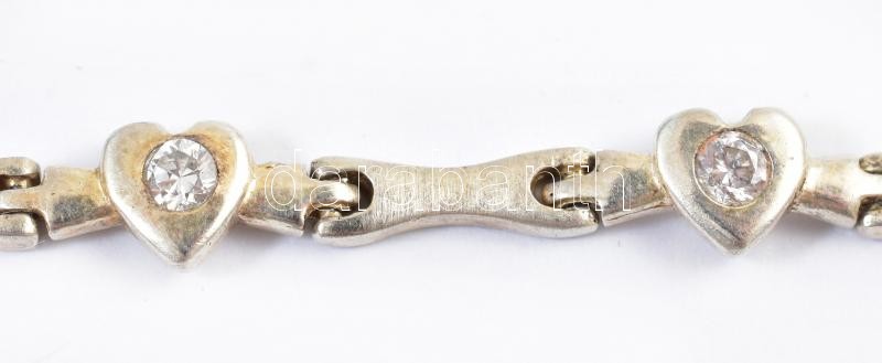 Ezüst(Ag) szívecskés karkötő, jelzett, h: 18 cm, bruttó: 7,94 g