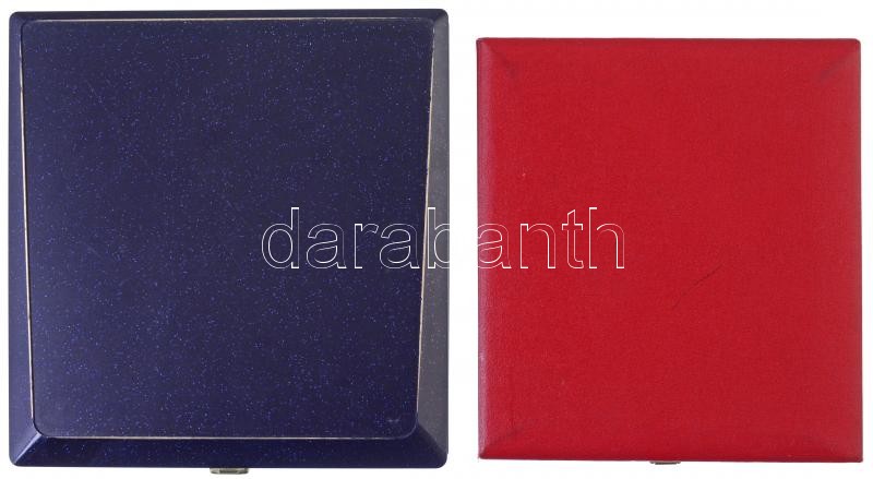 ~1970-1980. "MÁV pro ferrovia" zománcozott fém plakett tokban (90x105mm) + ~1990-2000. "A vasút szolgálatáért" zománcozott fém plakett tokban (90x105mm) T:1-