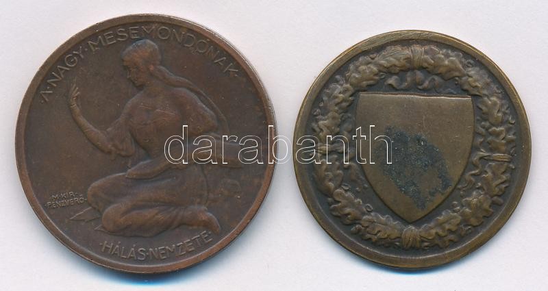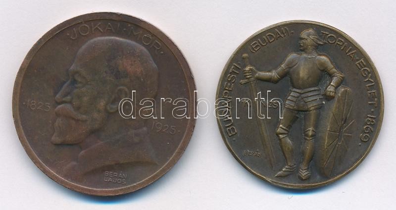 Description: Berán Lajos (1882-1943) 1925. "Jókai Mór 1825 - 1925 / A nagy mesemondónak hálás nemzete - Magyar Királyi Pénzverő" kétoldalas Br emlékérem (36mm) + ~1940. "Budapesti Budai Torna Egylet 1869 - Kinizsy" kétoldalas Br emlékérem (33mm) T:2,2- ph.
