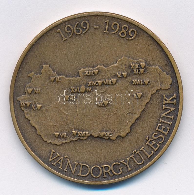Bognár György (1944-) 1989. "20 éves a Magyar Éremgyűjtők Egyesülete / 1969-1989 Vándorgyűléseink" Br emlékérem (42,5mm) T:1-