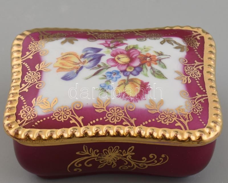 Német virágmintás porcelán bonbonniere, kézzel festett, PM jelzéssel, ...