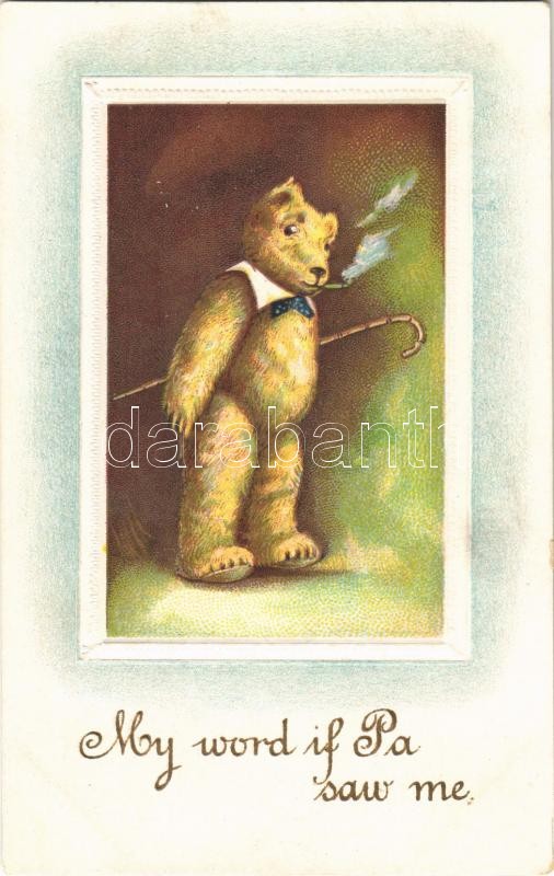 My world if Pa saw me / Plüssmaci cigizik / Teddy bear smoking a cigarette. B.B. London & New York Series No. E 244. Emb. litho