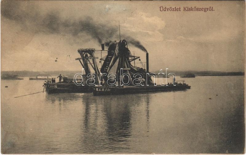 1911 Kiskőszeg, Batina (Darázs, Draz); kotróhajó a Dunán. Kiadja Borko...