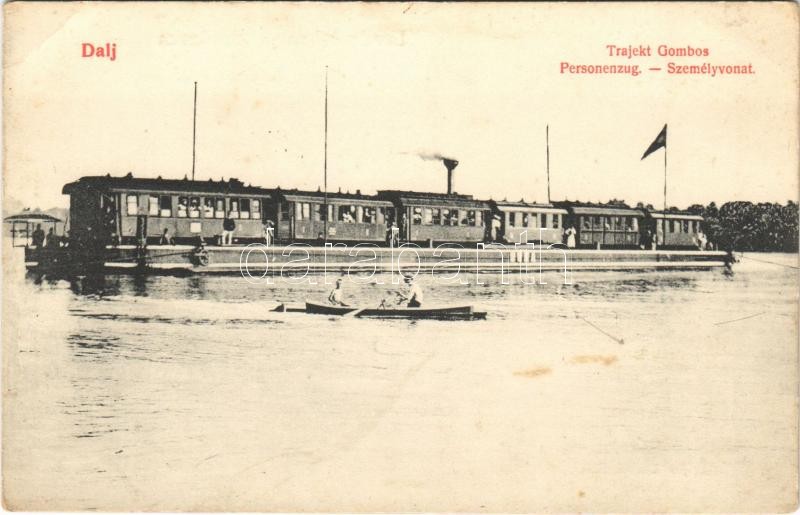 Dálya, Dalja, Dalj (Erdőd, Erdut); Trajekt Gombos / Personenzug / személyvonat gőzkompon Gombos felé. Jos. Krausz 7. / train on steam ferry to Bogojevo (EK)