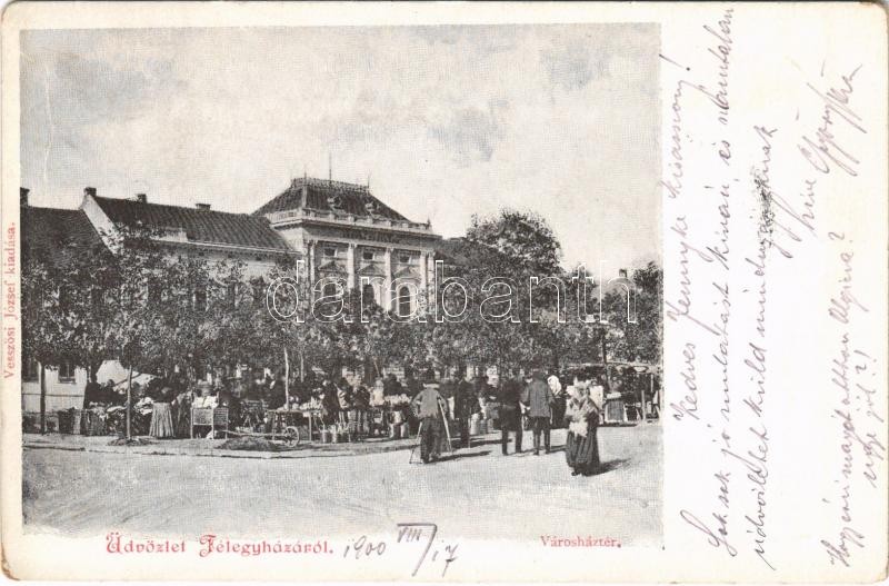 1900 Kiskunfélegyháza, Félegyháza; Városház tér, piac árusokkal. Vesszösi József kiadása