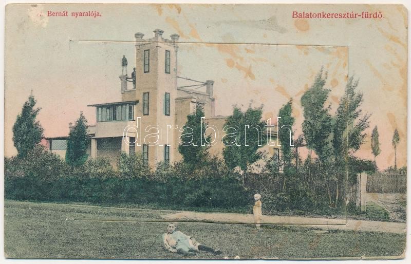 1910 Balatonkeresztúr, Dr. Bernát nyaraló. leporellolap, belül nyaraló...