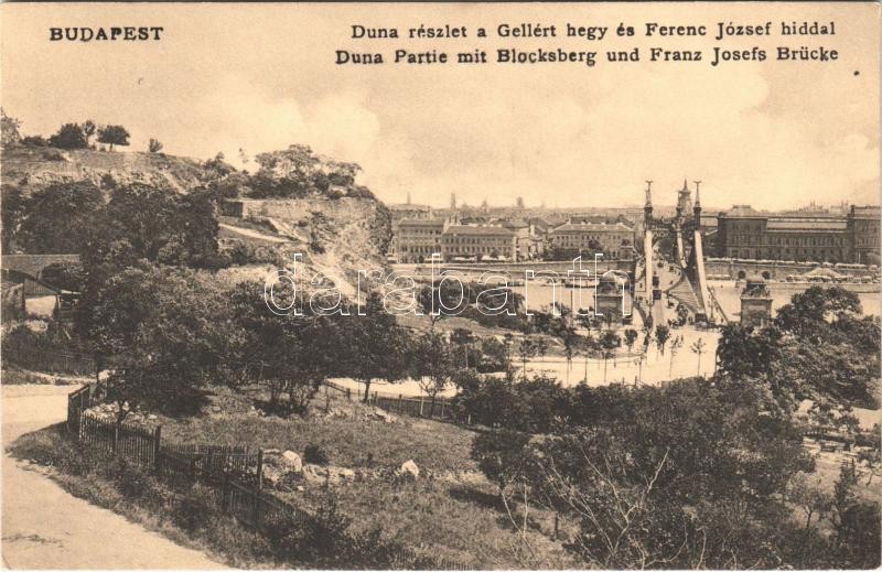 1917 Budapest XI. Duna részlet, Gellért hegy és Ferenc József híd. Sac...