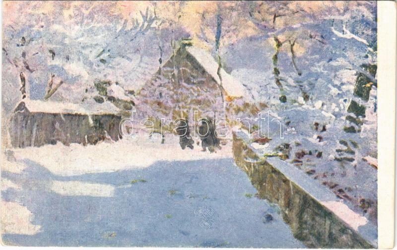 WWI Ukrainian military art postcard, winter patrol s: Kurylas