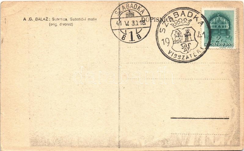 1941 Szabadka, Subotica; Szabadkai népviselet / folklore, traditional costumes s: A. G. Balaz + "1941 Szabadka visszatért" So. Stpl. (EK)