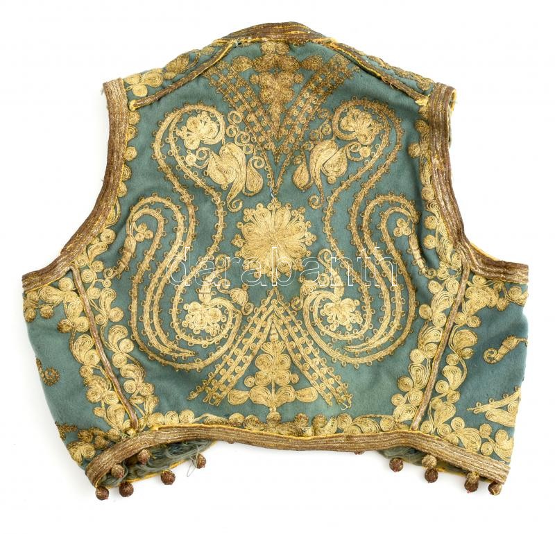 Antik, feltehetően XIX. sz. végi vagy XX. sz. eleji női vagy gyerek mellény, hímzett szövet, belseje sérült, hossz: 36 cm, szélesség: 39 cm