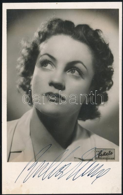 Bulla Elma (1913-1980) színésznő saját kezű aláírása az őt ábrázoló fo...