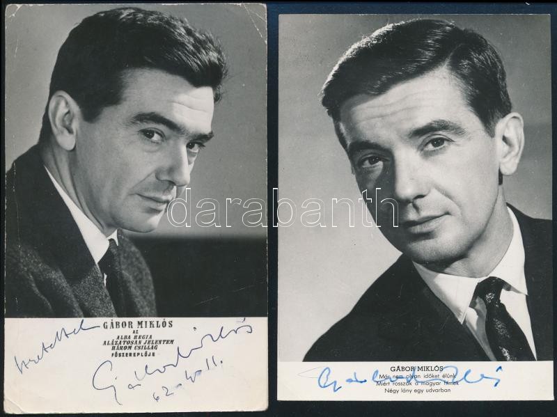Gábor Miklós (1919-1998) Kossuth-díjas színész aláírása 2 db őt ábrázo...