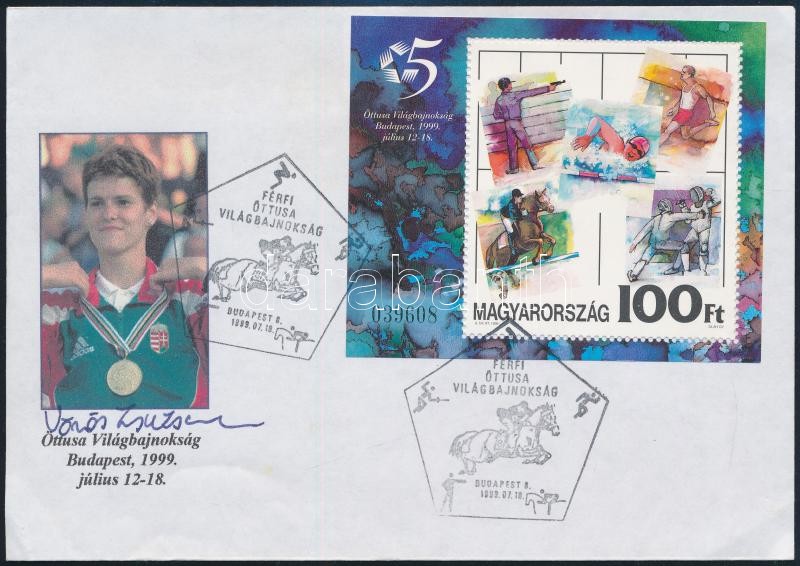 Vörös Zsuzsanna (1977-) olimpiai bajnok öttusázó aláírása egy őt FDC-n