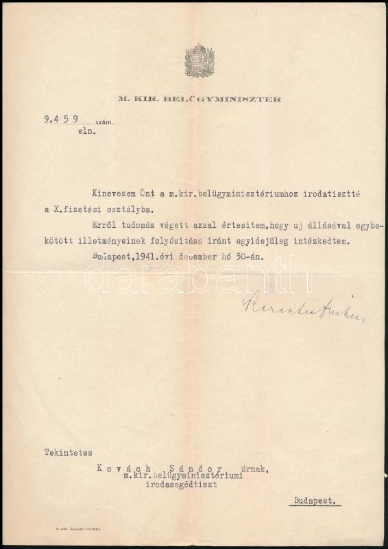 https://www.darabanth.com/en/395-Online-auction/395.0/Art-and-other-collectibles/Documents~500018/1941-Bp-Kinevezesi-okmany-Keresztes-Fischer-Ferenc-1881-1948-belugyminiszter-sajat-kezu-alC3~II2402040
