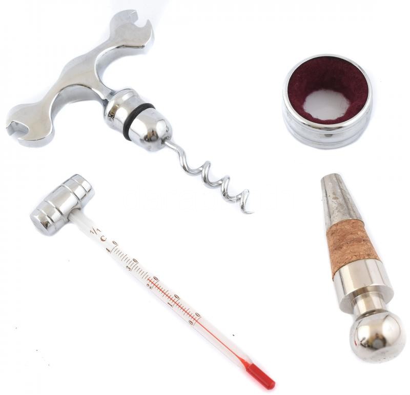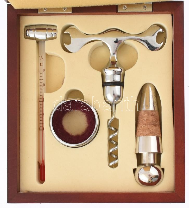 Exkluzív boros készlet, díszdobozban, melyen kis kopás. 16x16 cm